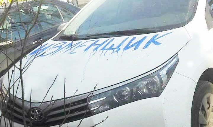 Его вторая половинка полностью разрисовала автомобиль неприличными рисунками (по этическим соображениям мы их стерли), а также надписями “изменщик” и “кабель”.