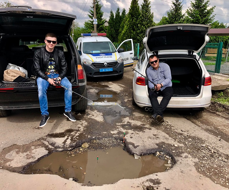 Вот вам яркий тому пример – двое парней сидят в своих машинах и… пытаются при помощи удочек поймать рыбу в яме, которую заполнила вода после дождя. Фото, которое было сделано во Львовской области, опубликовал пользователь Facebook Андрей Немчук.