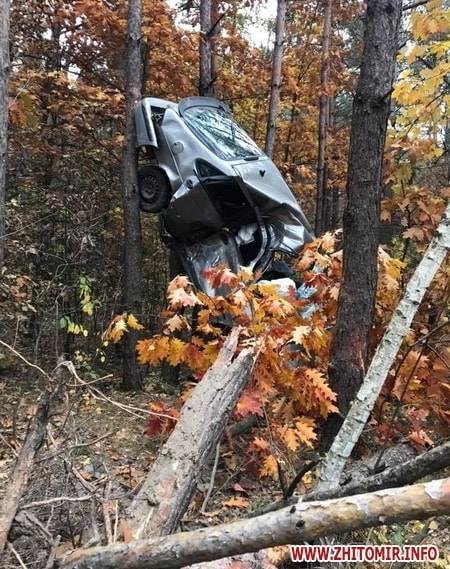 В Житомирской области произошло по-настоящему каскадерское ДТП, которое, к счастью, обошлось без жертв. Водителю Saab 9-3 удалось воткнуть свое авто буквально вертикально в землю.