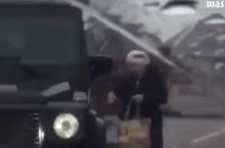 Видео опубликовал в Youtube Вячеслав Жайворонок. Пожилая женщина выходит из магазина, кладет покупки на заднее сиденье Mercedes Gelandewagen, а затем садится за руль элитного внедорожника.