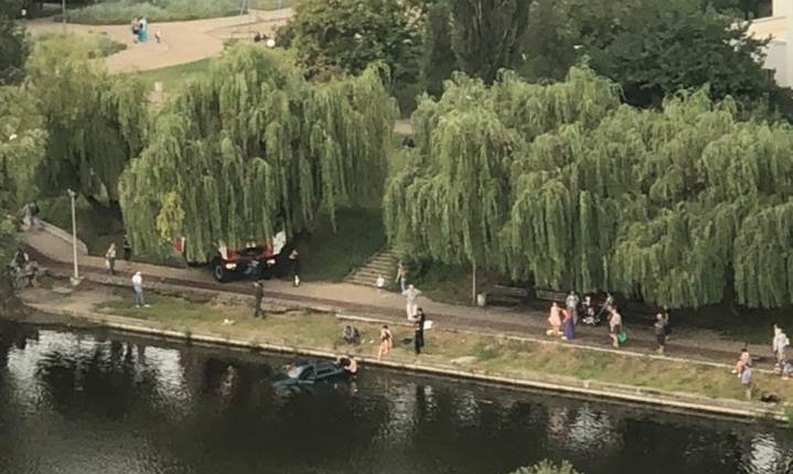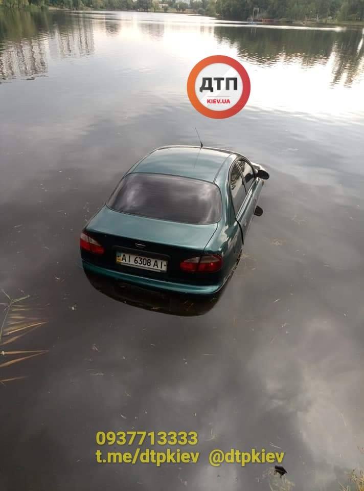 Речь идет об утопленном Дэу Ланос в озере Тельбин, что в Днепровском районе. Интересно в этой ситуации то, что вокруг водоема находится сплошная пешеходная зона, и как там оказался горе-Ланос, остается только догадываться.