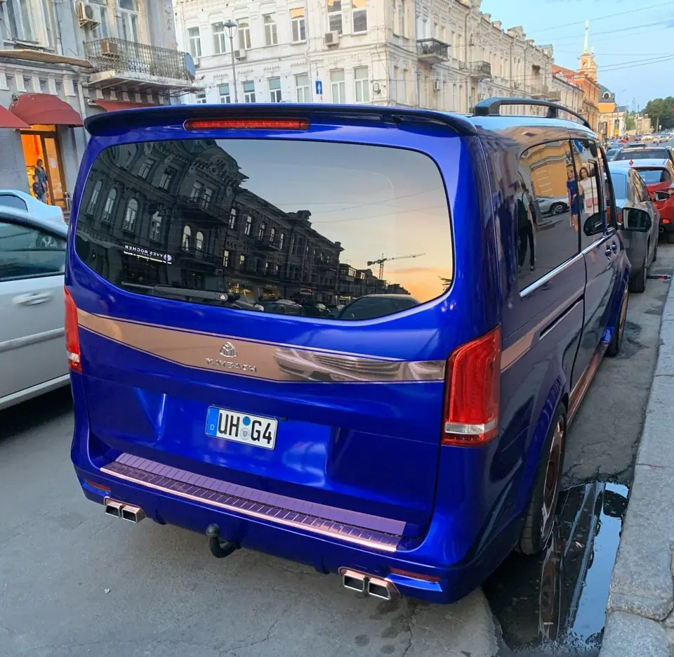 И, надо сказать, доработка эта весьма привлекательна и не особо колхозна: автомобиль V-Class получил умеренное количества хрома, более выразительную решетку радиатора, спойлер на крыше и колесные диски а-ля Maybach. Разве что двойной выхлоп выглядит как-то неказисто.