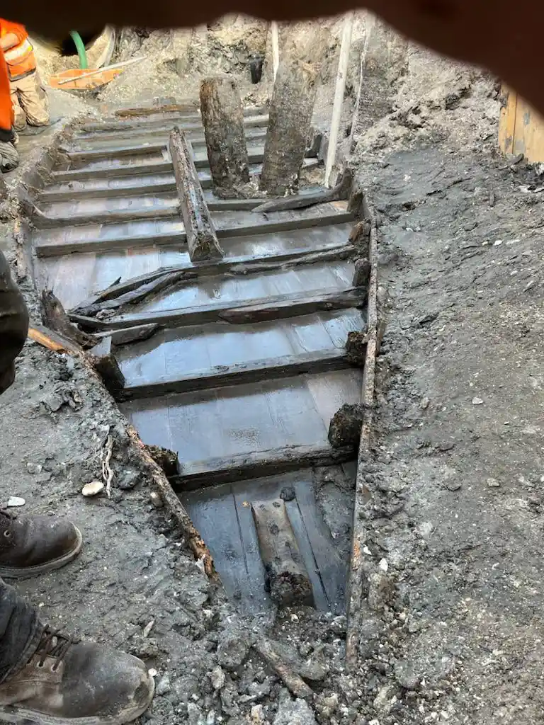Недавно бригада дорожников ремонтной службы, работавшая в квартале от набережной Сент-Огастина, обнаружила на глубине 2,4 метров под землей лодку 1800-х годов. По мнению археологов, 8,5-метровое судно было построено на том месте, где его обнаружили. От него осталось всего около 5,5 метров. Корму, по всей вероятности, смыло еще до того, как грязь и ил покрыли и погребли остальную часть.