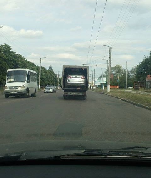 В редакцию Автоцентра прислали забавные фото из Кропивницкого. На них вы можете видеть, как достаточно крупный автомобиль – Ford Modeo – загрузили на платформу коммерческого авто (предположительно – шасси Mercedes Sprinter или Ford Transit).