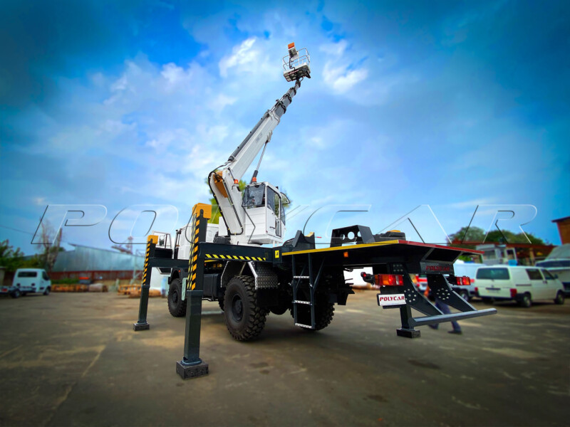 Одна из самых свежих разработок – установка автовышки на шасси, изготовленная базе грузового автомобиля МАЗ-5316. На который специалистами технических служб Polycar спроектирована, изготовлена и установлена опорная конструкция и автовышка 28 метров высотой марки PAKSAN KT285, подробное описание проекта на сайте производителя по ссылке – https://polycar.com.ua/news/1381-paksan-maz/.