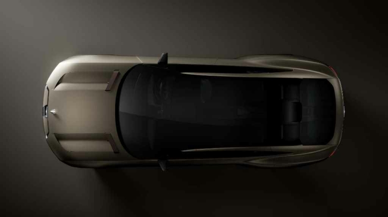 Относительно плоский капот плавно перетекает в наклонные передние черные стойки, которые переходят в темную покатую крышу. Последняя контрастирует с серебристо-золотым кузовом. Округлые колесные арки прикрывают аэродинамически оптимизированные колеса и сочетаются с мускулистыми задними крыльями. Фонари выполнены в форме единого блока и подчеркивают выраженный бампер. Дорожный просвет у авто высокий.