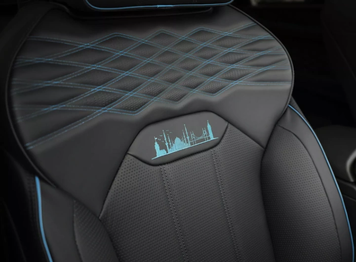 Салоны автомобилей отделаны перфорированной высококлассной кожей и алькантарой с оригинальной прострочкой. Еще на спинках сидений и задних подушках присутствуют вышивки с изображениями достопримечательностей Стамбула, а именно Девичьей башни, Галатской башни и Босфорских мостов. В качестве акцентов использованы вставки из натурального дерева Piano Imperial Blue и кварцевого сланца.