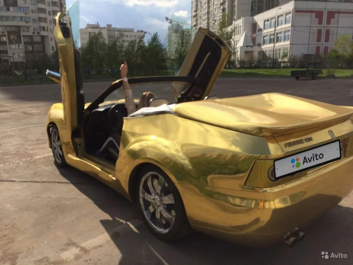«Золотой» Porsche 924 построен на базе модели 1988 года. От базовой версии родстер отличается не только цветом кузова, но и некоторыми другими элементами. Поскольку базовая модель - Porsche 924 – выпускалась исключительно в кузове купе, в процессе превращения в родстер умельцы срезали крышу автомобиля. При этом никакой замены, даже тканевой ей не предусмотрели.
