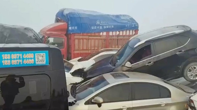 В городе Чжэнчжоу (Китай) на мосту через реку Хуанхэ произошла масштабная авария, причиной которой стал сильный туман. Видимость была менее 200 метров.