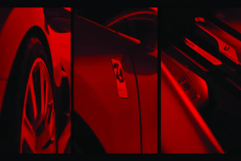 Детали на тизерах соответствуют деталям первого серийного Veyron. Оригинальная модель отличалась фирменной двухцветной окраской — красно-черной — в сочетании с бежевым салоном и ненавязчивыми алюминиевыми акцентами.