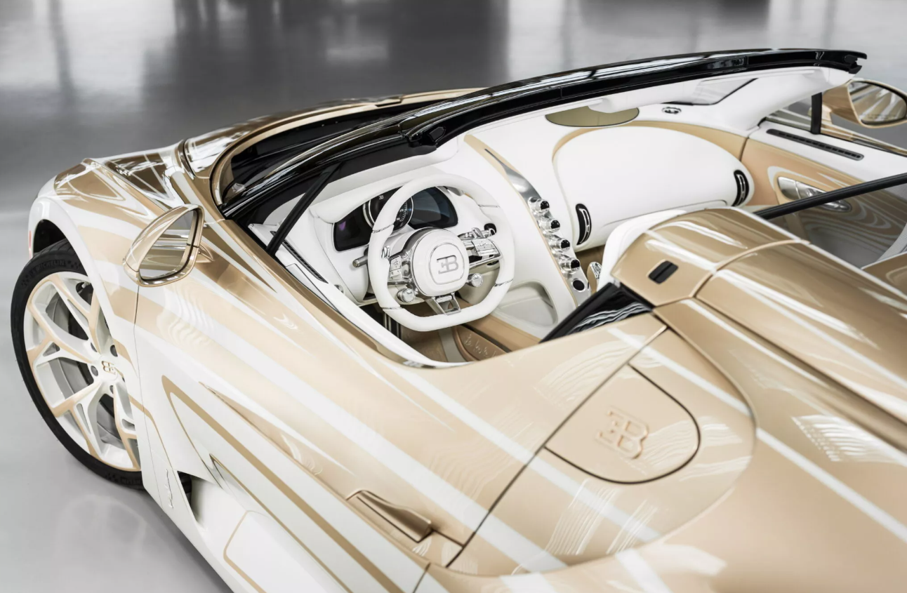 Отмечается, что уникальный кабриолет Bugatti создан в единственном экземпляре и не пойдет в серию, даже лимитированную. Он получил ливрею «Vagues de Lumière» или «Волны света», на воссоздание которой у специалистов компании ушли сотни часов. Этот цвет получился в результате специальной комбинации золотистого оттенка и теплого белого. Оба являются эксклюзивными. Также они используются на легкосплавных дисках с алмазной огранкой.