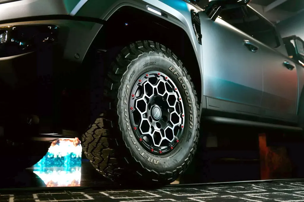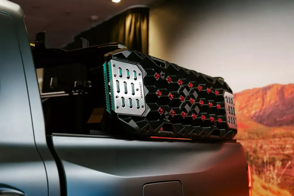 Автомобиль обут в «зубастые» шины BFGoodrich All-Terrain размерности 285/70 R17 на колесах с бедлоками. Внедорожный антураж дополняют шноркель и экспедиционный багажник в кузове с закрепленными сэнд-траками. Ожидается, что серийная версия в топовых комплектациях сохранит большую часть этих решений, но в чуть более сдержанном исполнении.