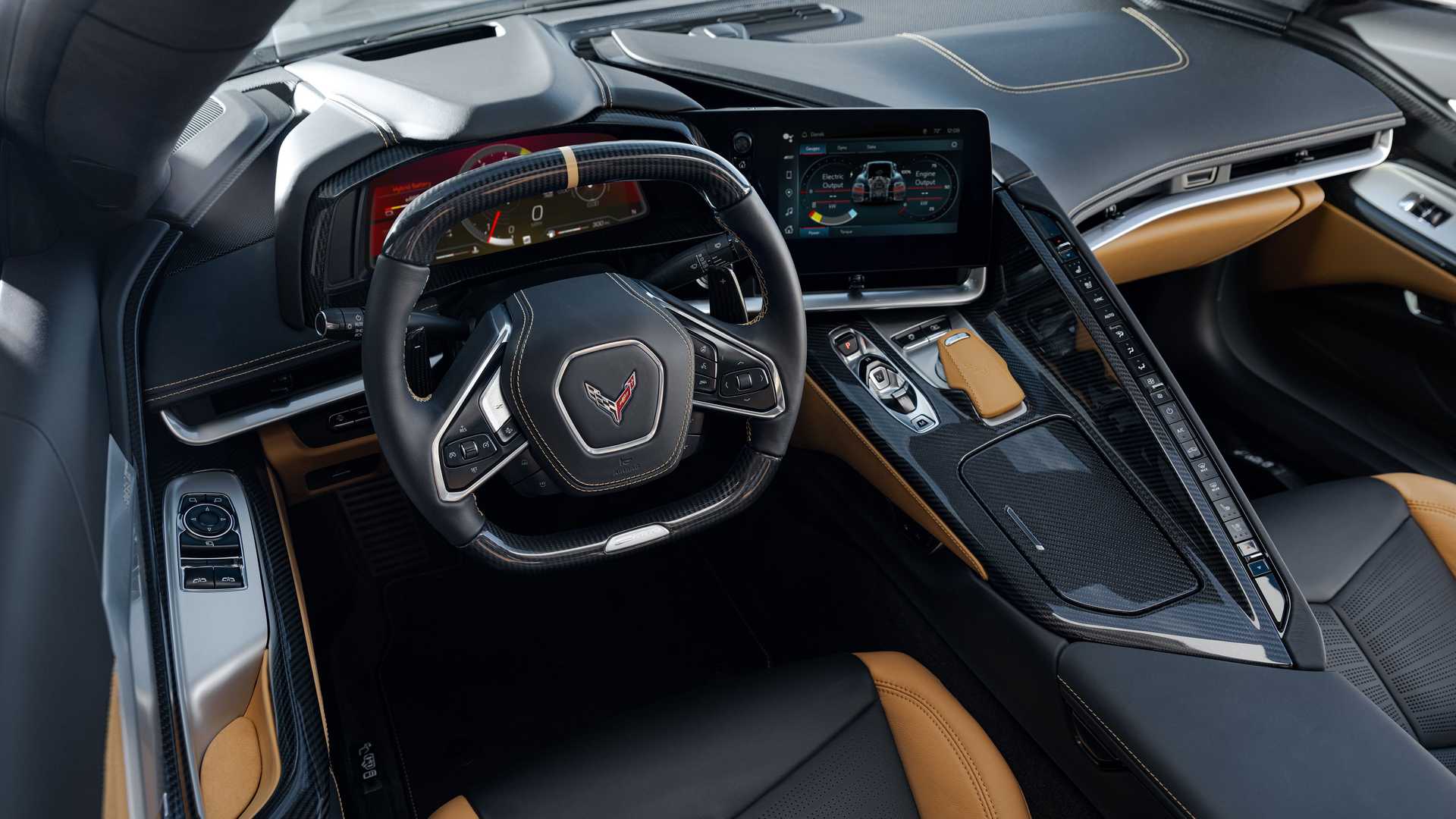 Батарея емкостью 1,9 кВтч у нового Corvette E-Ray заряжается от рекуперативного торможения и движения накатом. Также у него есть режим Stealth Mode. Он позволяет суперкару ездить на электротяге со скоростью 72 км/ч. Правда запас хода очень скромный. Когда батарея разряжается или водителю нужно больше мощности, бензиновый двигатель включается автоматически.