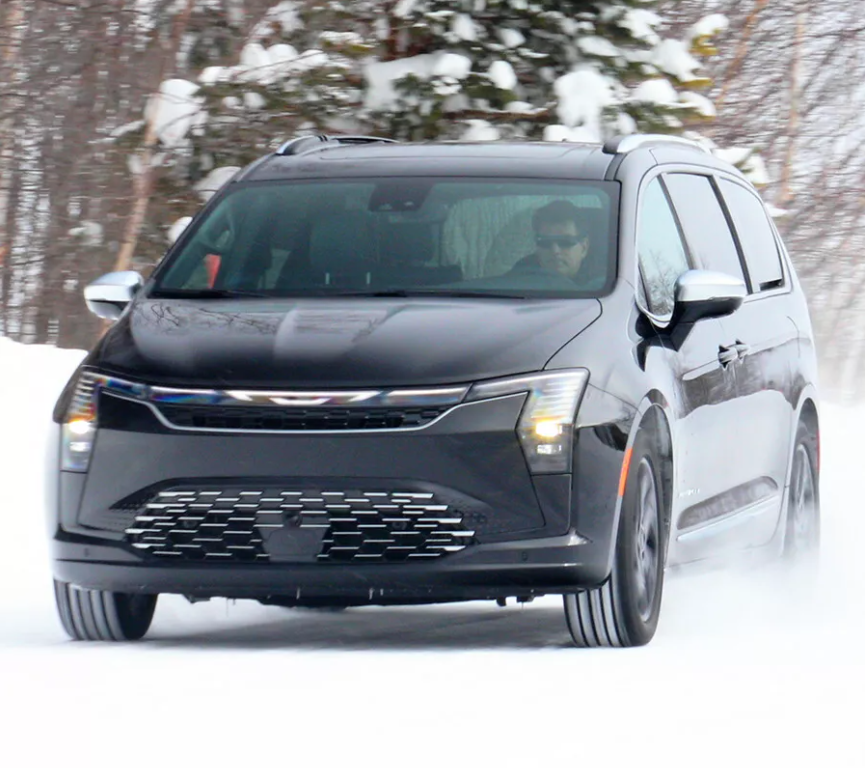 Судя по снимкам, новый Pacifica сохранит знакомый кузов и останется узнаваемым, но получит переработанную переднюю часть, которая напоминает актуальные модели Cadillac и Kia. У минивэна вертикальные фары с угловатыми акцентами, которые между собой соединены светящейся полосой с эмблемой Chrysler, узкая решетка радиатора и бампер с крупным воздухозаборником. Что касается капота, то он стал более фактурным.