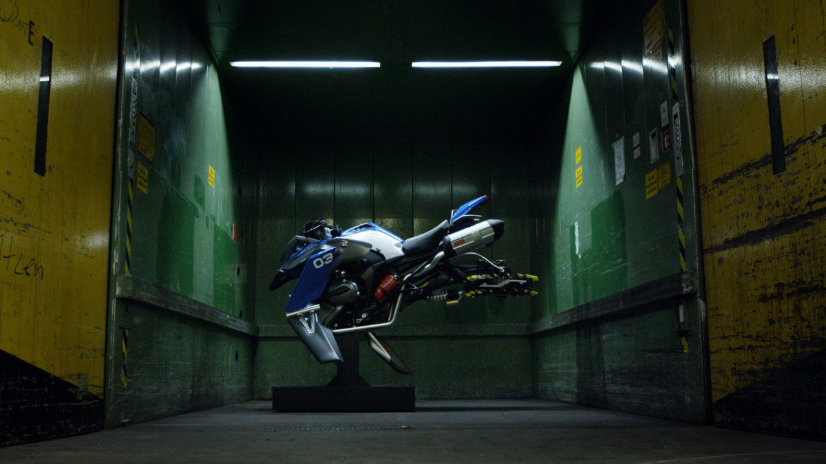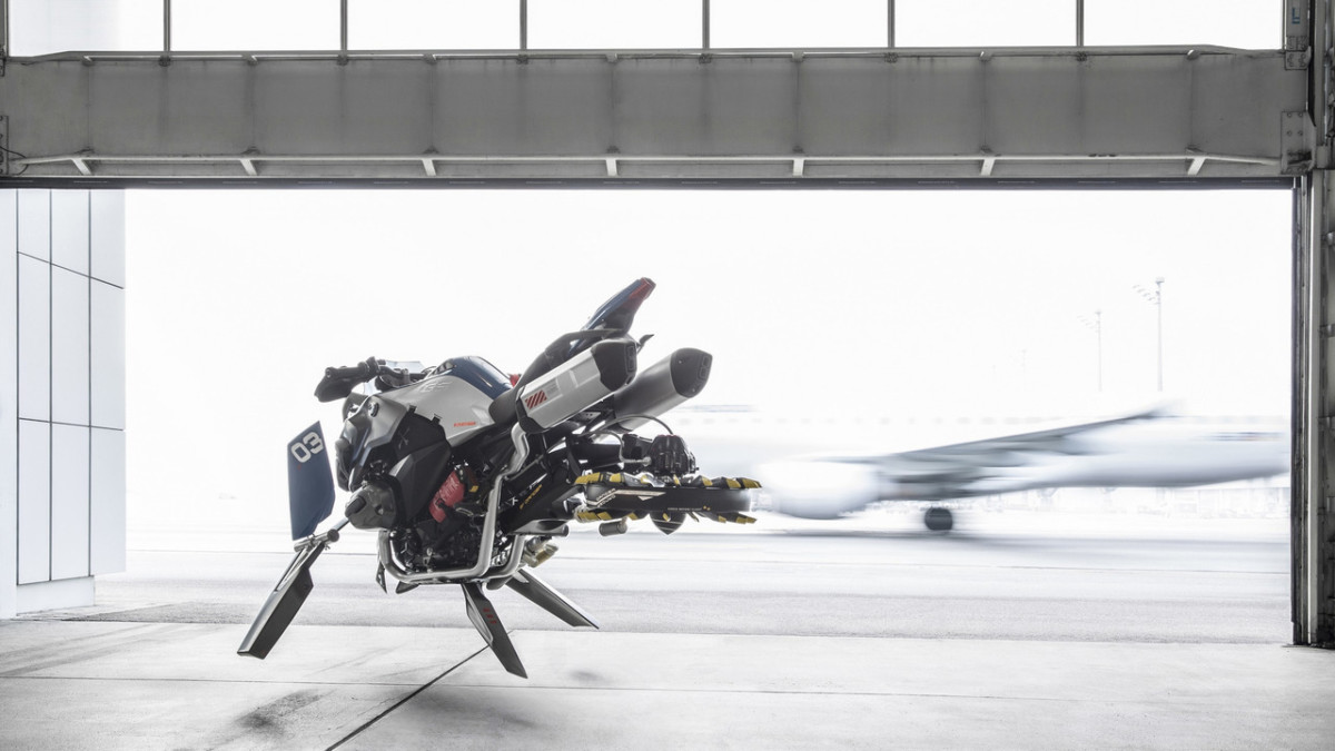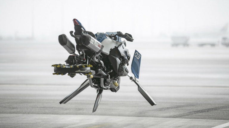 Двигатель БМВ приводит в движение специальный пропеллер в нижней части мотоцикла. Он образует разрежение под байком и создает эффект воздушной подушки, что и позволяет ему парить над землей.