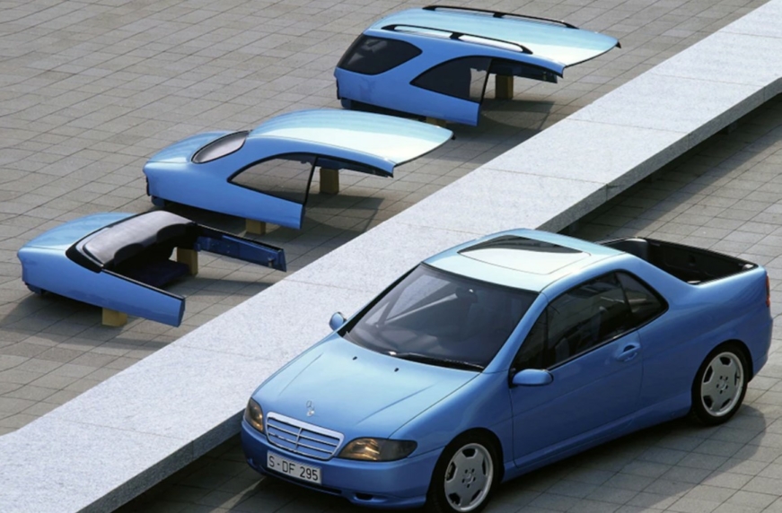 В этот день, ровно 28 лет назад, на Женевском автосалоне 1995 года состоялся дебют инновационного концепт-кара Mercedes-Benz VRC (Vario Research Car). Его фишкой стал двухдверный кузов из углепластика, который получил четыре сменных модуля. Последние позволяли сделать из автомобиля седан, универсал, кабриолет или пикап всего за 15 минут. Модули весили всего от 30 до 50 кг и фиксировались с помощью нескольких замков.