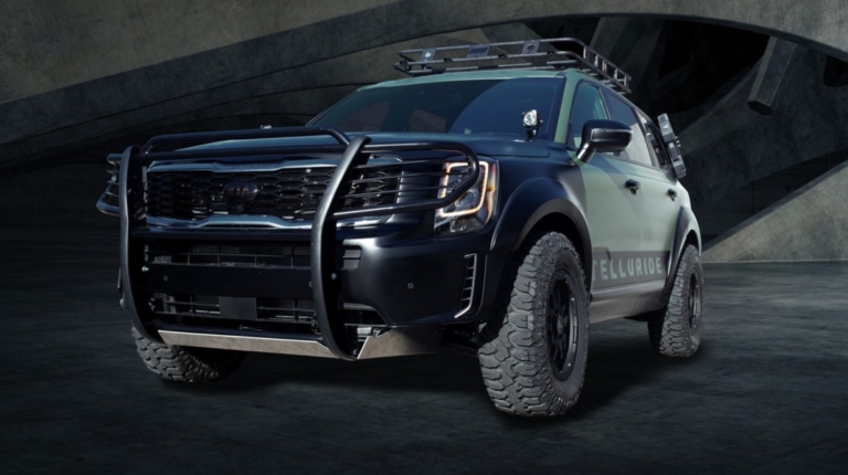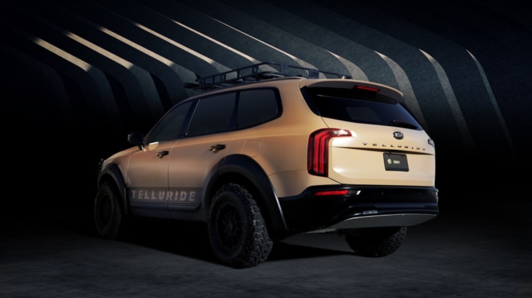 Концепт-кары Kia Telluride подготовили к бездорожью. У них увеличен клиренс и установлены 32-дюймовые внедорожные шины. Также на авто появились кенгурины, дополнительная диодная оптика и багажники на крыше. А Kia Telluride Horizon Roamer получил даже шноркель.