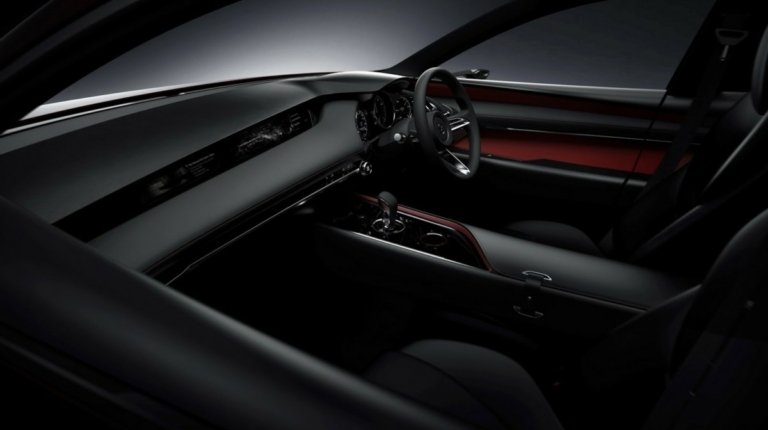 В то время как внешний вид Mazda Kai обладает множеством привлекательных деталей, интерьер является довольно простым. Здесь обычное рулевое колесо с традиционной приборной панелью. Также концепт оснащен высокотехнологичной информационно-развлекательной системой, которая может прятаться в торпедо. Доминирует в салоне кожаная обивка, которая контрастирует с красными акцентами.