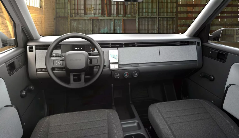 Что касается салона Blank Slate, то он довольно утилитарный. В оснащении нет привычной мультимедии с огромным экраном, аудиосистемы и радио. Здесь вы найдете только простое рулевое колесо и небольшую цифровую приборную панель приборов. Вместо мультимедии компания предлагает использовать смартфон или планшет, для них предусмотрено крепление на передней панели. Такой шаг позволил снизить цену на модель.