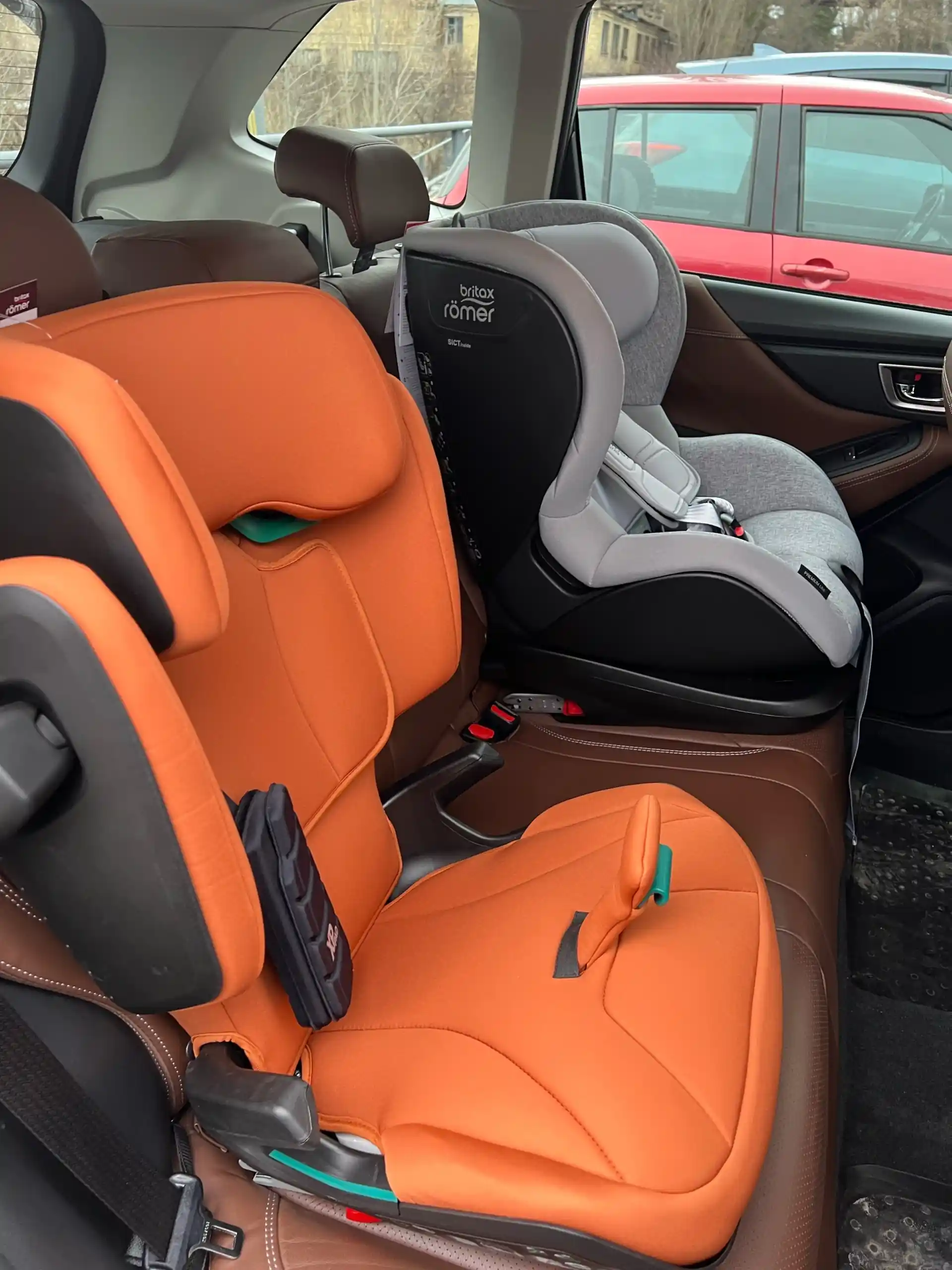 Как мы видим, исходя из объективных показателей, этот семейный автомобиль максимально безопасен для всех членов семьи. Имея необходимые возможности, мы решили провести свой, так сказать, практический тест. Конечно, ударные испытания исключаются. Поэтому мы хотим взглянуть на то, как сочетается эта модель и автокресло, в практической, повседневной эксплуатации. Чтобы не использовать бутафорные автокресла, мы берём два настоящих автокресла от производителя Britax-Romer. Почему их? Ну потому, что автокресло от этого производителя тестировалось на Euro NCAP вместе с этой моделью автомобиля.