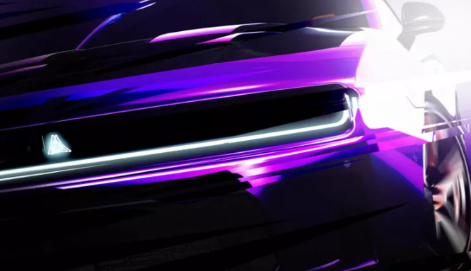 Чтобы подогреть интерес к модели, Dodge опубликовал пару тизеров, засветив переднюю часть автомобиля. Судя по ним, концепт Charger окрасят в уникальный фиолетовый оттенок, который контрастирует с черным капотом с огромным воздухозаборником. Он указывает на то, что авто оснастят бензиновым мотором.