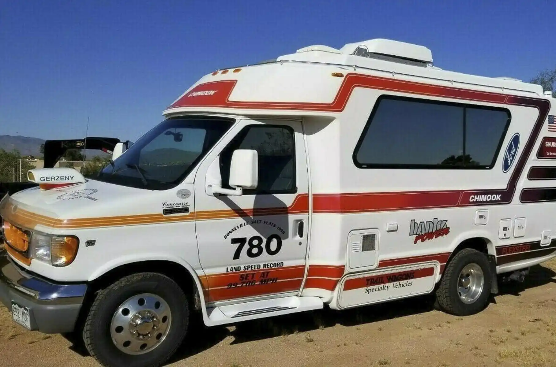 На eBay появилось объявление о продаже кемпера с богатой историей. Речь об автодоме Chinook RV, построенном на базе фургона Ford E-350. Уникальность лота в том, что в 1998 году он стал мировым рекордсменом скорости среди автодомов на соляном озере Бонневиль. Тогда его удалось разогнать до 160 км/ч.
