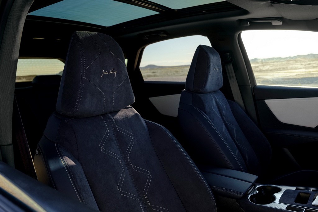 Наприклад, небесну блакить символізує насичений синій колір кузова Sapphire Blue, хромовані логотипи виконані з підписом Жуля Верна, а легкосплавні 19-дюймові колісні диски прикрашені золотистими ковпачками. В салоні автомобіля панує відчуття розкішної каюти, призначеної для довгих пригод: оздоблення DS Inspiration Performance Line виконано з використання матеріалу Alcantara синього кольору, передня панель демонструє декор перлинного кольору, а на підголівниках вишиті логотипи-підписи цього всесвітньовідомого автора пригодницьких романів. Зробіть запит на консультацію менеджера – та дізнайтесь про всі особливості унікального автомобіля DS 7 Jules Verne.