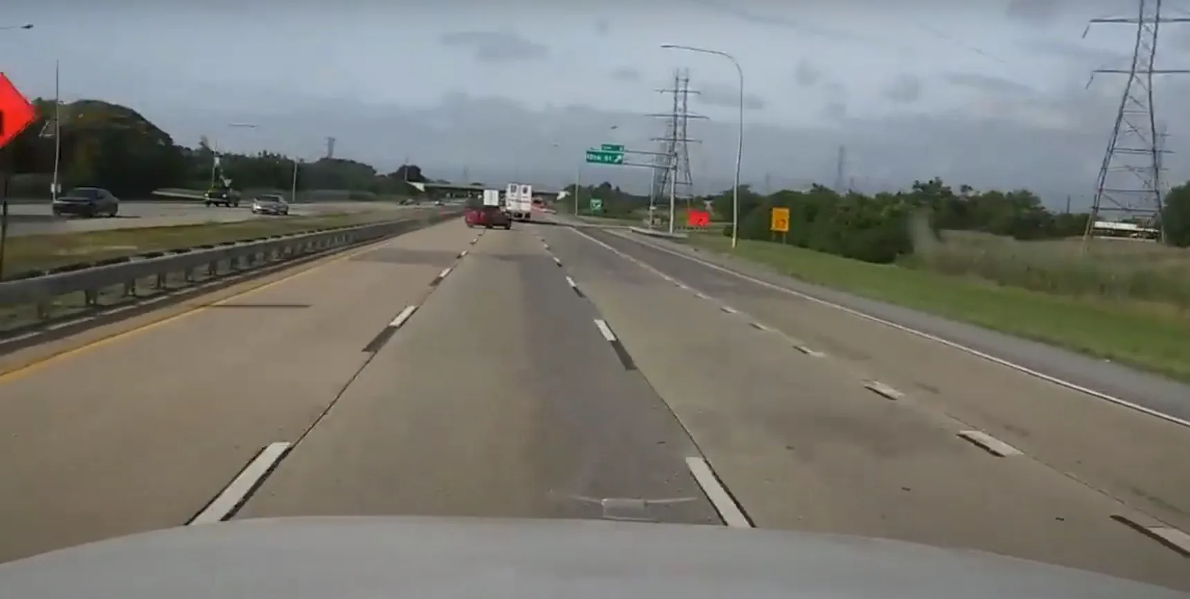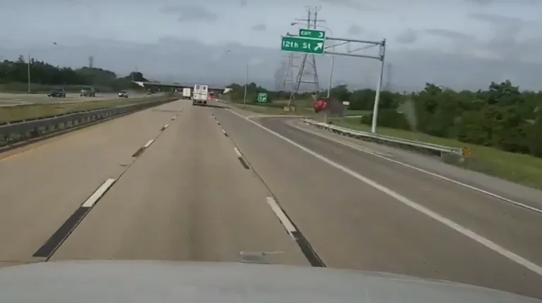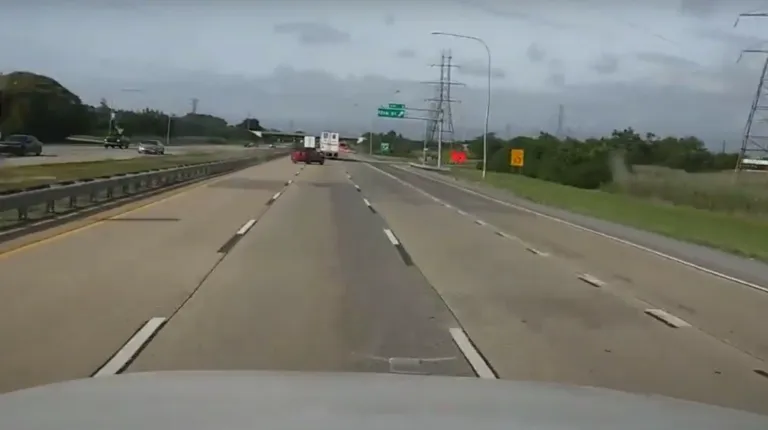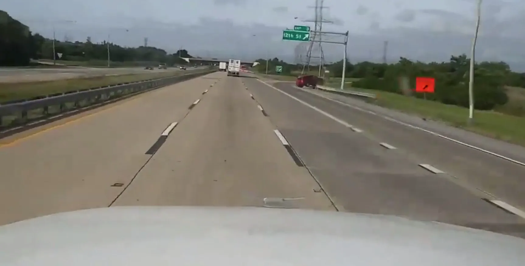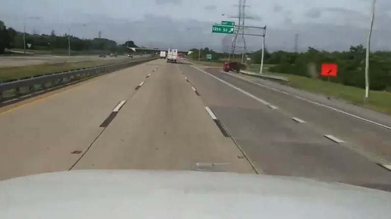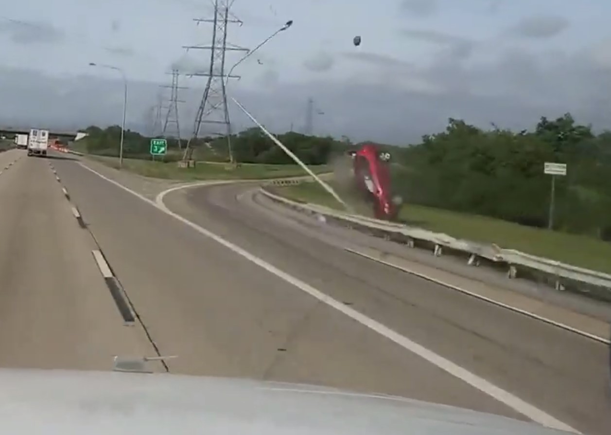 Авария случилась в США. Автомобиль двигался по прямой по скоростному шоссе. После нескольких колебаний устойчивость транспортного средства на дороге, по всей видимости, была потеряна, и красная Тойота улетела на обочину. При этом кроссовер пересек довольно широкую магистраль и в конце своего пути даже ненадолго оторвался от поверхности, а затем выполнил переворот.