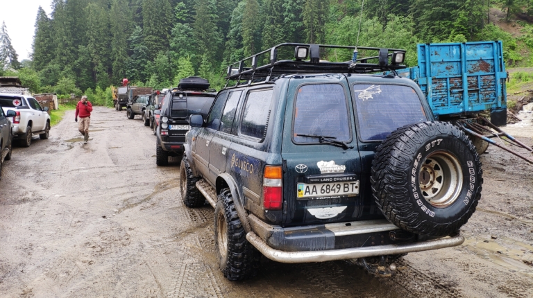 2 июля пять экипажей отправились в Верховинский район, где их ожидали еще три экипажа членов клуба из Ивано-Франковска. В кузова пикапов Mitsubishi L200 были загружены медикаменты (антибиотики, обеззараживающие средства для очистки воды, средства первой помощи, противоаритмические лекарства для людей с сердечными заболеваниями), продукты питания и моющие средства, а также мощная грязевая резина участников экспедиции.
