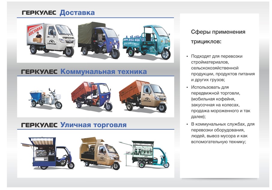 Поэтому компания Геркулес активно представляет на рынок электрические трициклы как альтернативу вело, мото и автотранспорту для использования в адресной доставке товаров и услуг.