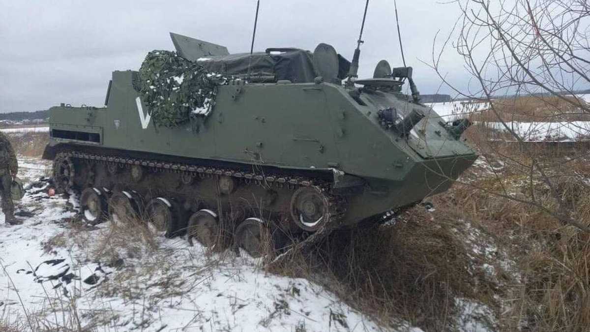 На этот раз рашисты бросили бронированную «амфибию». Это уникальный трофей! БТР-МДМ «Ракушка» построен на шасси боевой машины десанта БМД-4М. Он предназначен для перевозки 15 человек (2 члена экипажа +13 десантников) и способен передвигаться по воде со скоростью 10 км/ч. Стандартное вооружение включает два 7,62-мм пулемета ПКТМ.