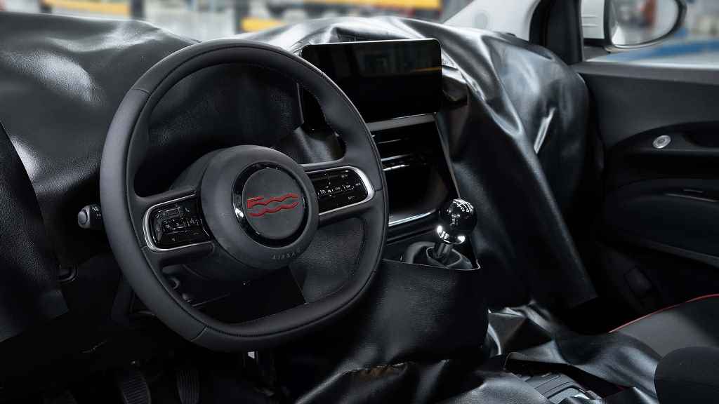 От электрической версии гибридная внешне почти не отличается. Fiat 500 Hybrid получил функциональную решетку радиатора, которая необходима для охлаждения мотора и пока скрыта за маскировкой. Салон этой версии миниатюрного хэтчбека также повторяет электрокар. В его оснащение входит двухспицевое рулевое колесо и мультимедийная система с 10,25-дюймовым экраном.
