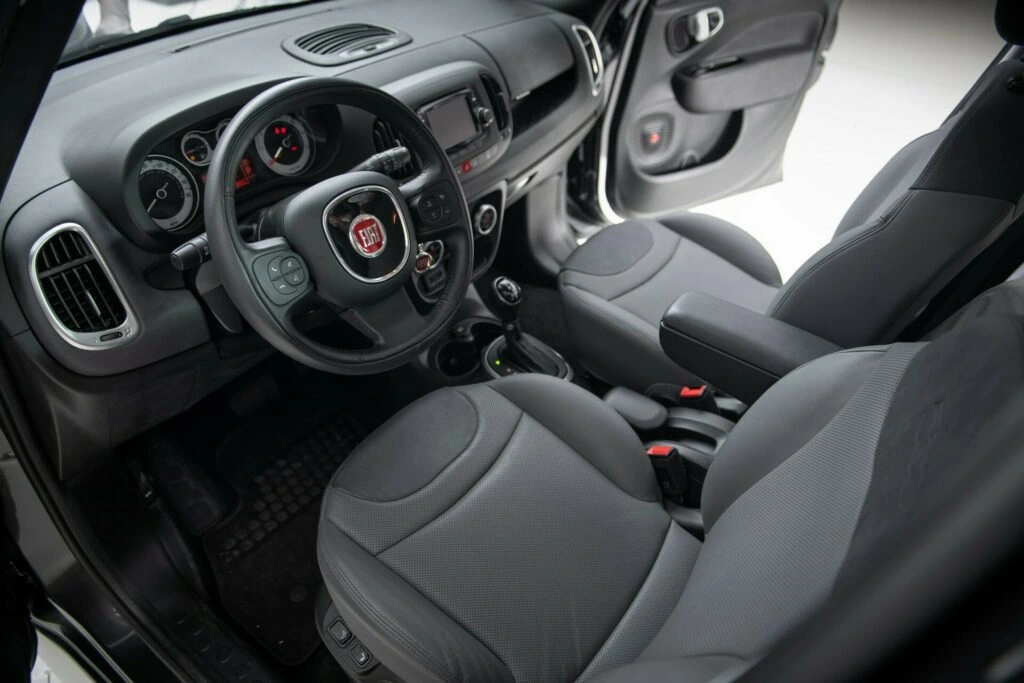 На одометре всего 1244 км. Кузов окрашен в цвет серый металлик с хромированными вставками и черными орнаментами. В салоне — передние кожанные сиденья с подогревом и аудиосистема с шестью динамиками. С конвейера Fiat 500L оснащен двухзонным климат-контролем и информационно-развлекательной системой Uconnect с 5- или 6,5-дюймовым экраном. Также у «папамобиля» есть зеркалом заднего вида с автозатемнением.