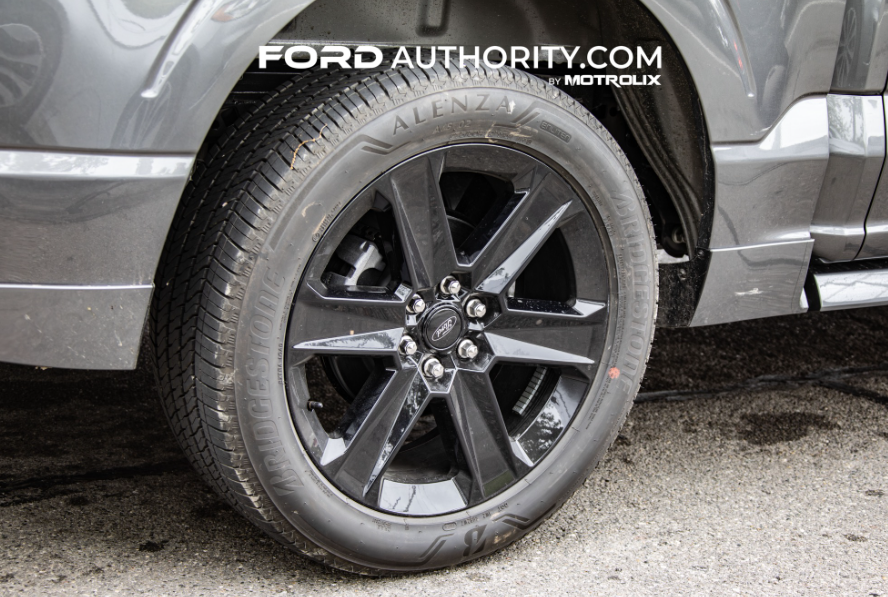 Также стоит отметить наличие обвеса и более низкую посадку, которые придают пикапу более спортивного вида. Ездит он на 22-дюймовых шестиспицевых глянцево-черных колесах, обутых в шины AS02 275/50R22 Bridgestone Alenza. Еще есть значок «F-150 Lobo» на передних крыльях.