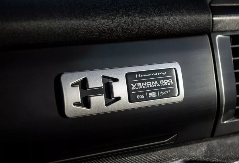 Venom 800 получил новые стальные бамперы, 20-дюймовые колеса, обутые в 35-дюймовые внедорожные шины, решетку Hennessey из углеродного волокна, подножки с электроприводом, подсвечиваемые значки на передних крыльях и дополнительные светодиодные фары. Салон пикапа почти не изменился, только на сиденьях вышиты надписи Hennessey, есть таблички с названием спецверсии и серийным номером.