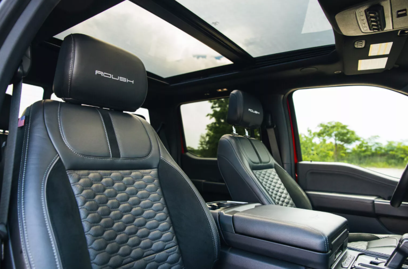 Оснащение салона пикапа Roush RT6 менять не стали. Только на полу уложили фирменные коврики марки, на подголовниках сидений появилась вышивка с ее названием, а еще декоративные вставки из углеродного волокна. Покупатели также могут заказать кожаные сиденья и консольный отсек. В компании заявили, что пакет модернизаций добавляет к стоимости пикапа Ford F-150 почти 24 тысячи долларов.
