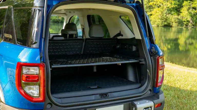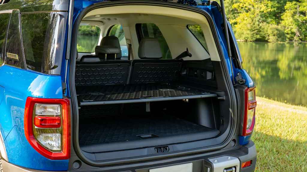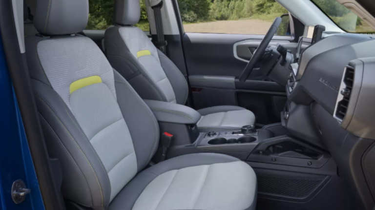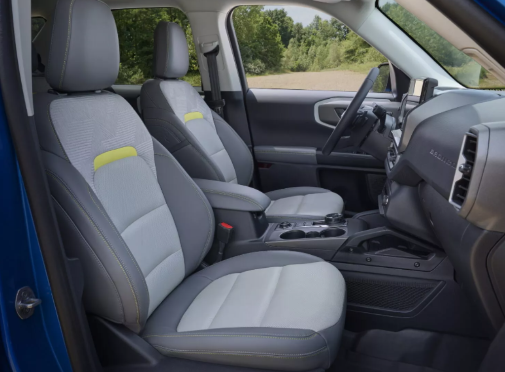 В салоне Bronco Sport Sasquatch установлена новая мультимедийная система с 13,2-дюймовым экраном, а в отделке использованы водостойкие материалы. Есть камеры кругового обзора с внедорожным режимом и дополнительные переключатели, на которые можно будет вывести управление, например, дополнительной световой балкой на крыше. Также расширили список систем помощи водителю, добавив адаптивный круиз-контроль с функцией Stop-and-Go и удержанием полосы движения.
