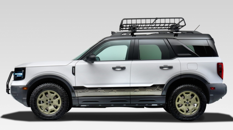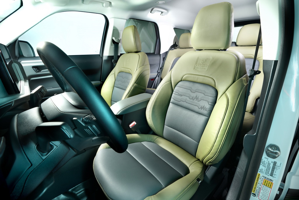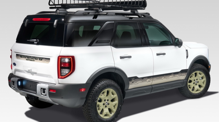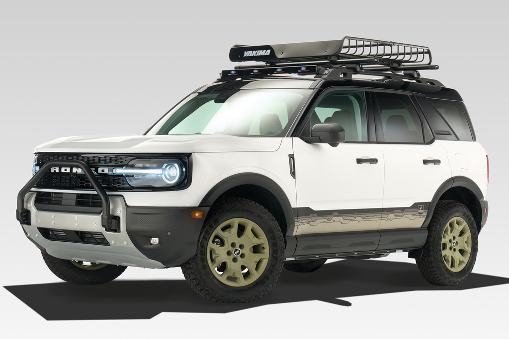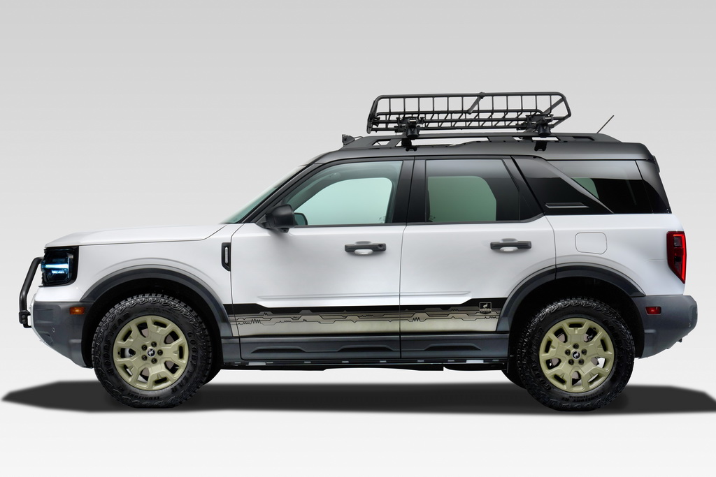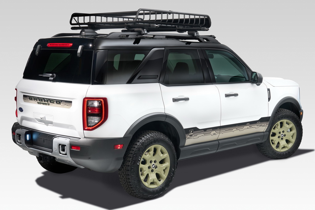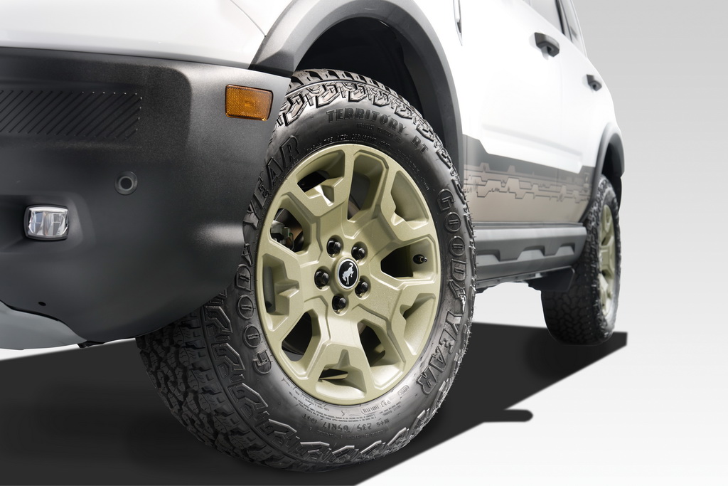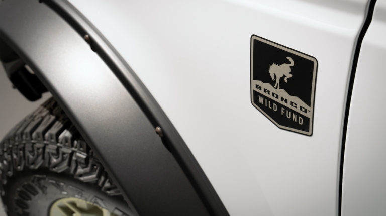 В аналогичном дизайнерском ключе выполнен и Bronco Sport Wild Fund. Автомобиль получил дополнительную светотехнику, экспедиционный багажник Yakima, защитную балку спереди и мощные буксировочные проушины в заднем бампере, 17-дюймовые зеленые диски, внедорожную резину Goodyear Territory RT. Салон выполнен в двухцветной гамме, а удобство водителю и его спутникам обеспечат кожаные сиденья Katzkin с комбинированной отделкой.