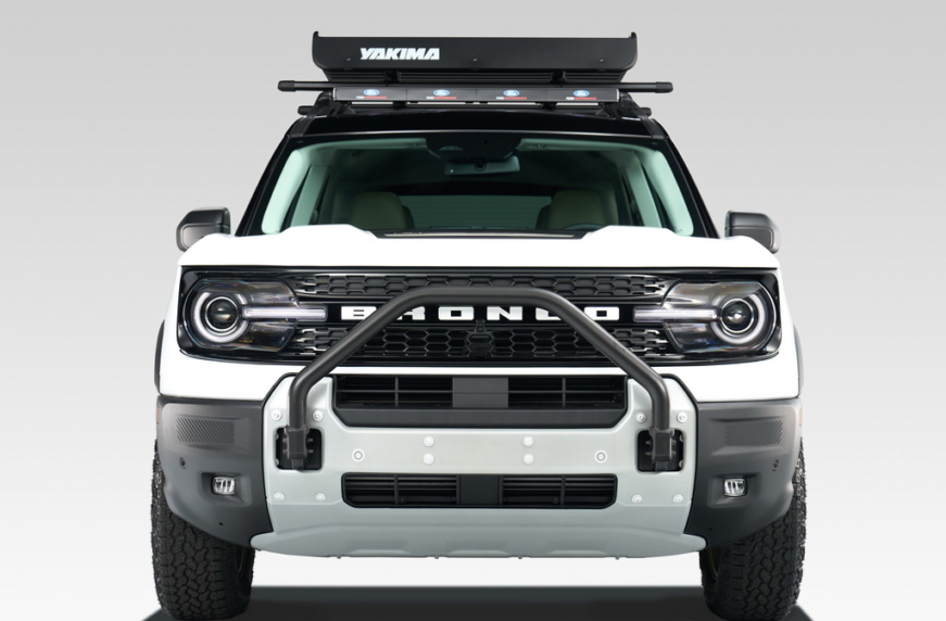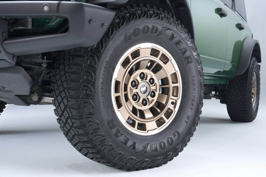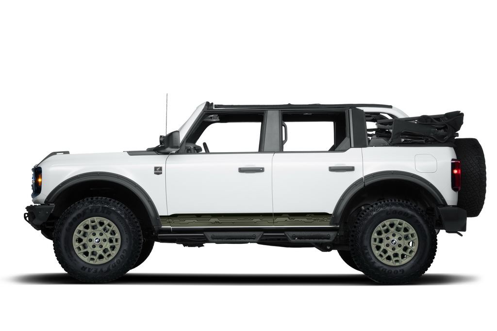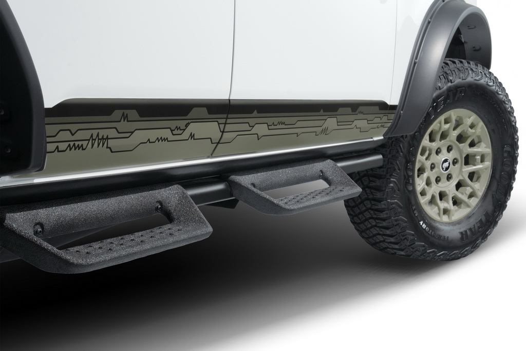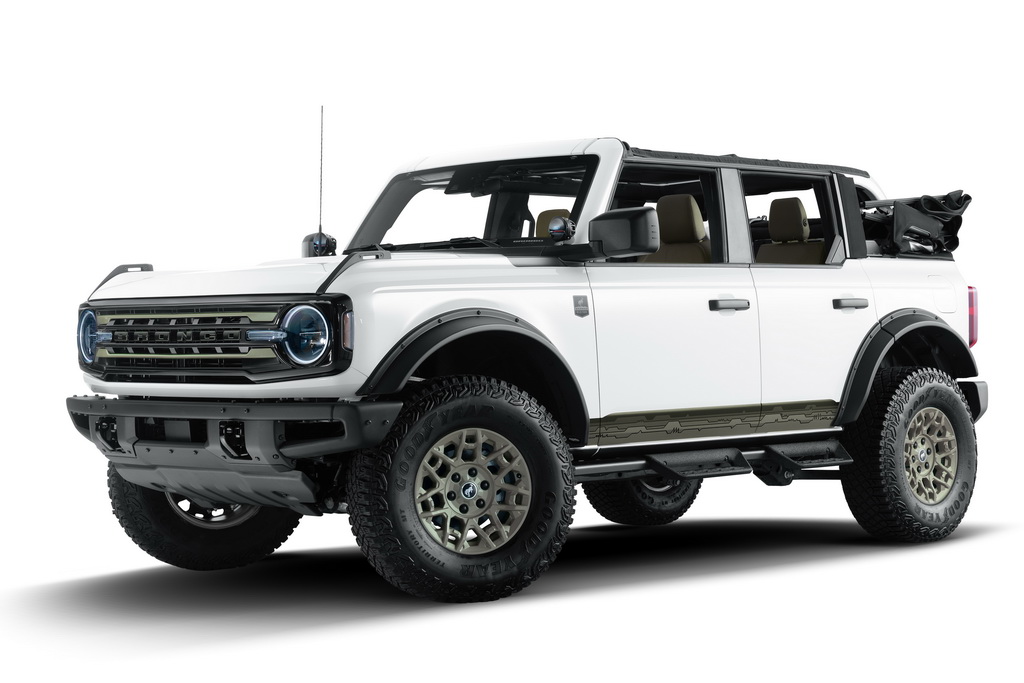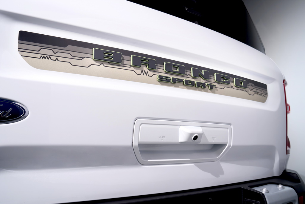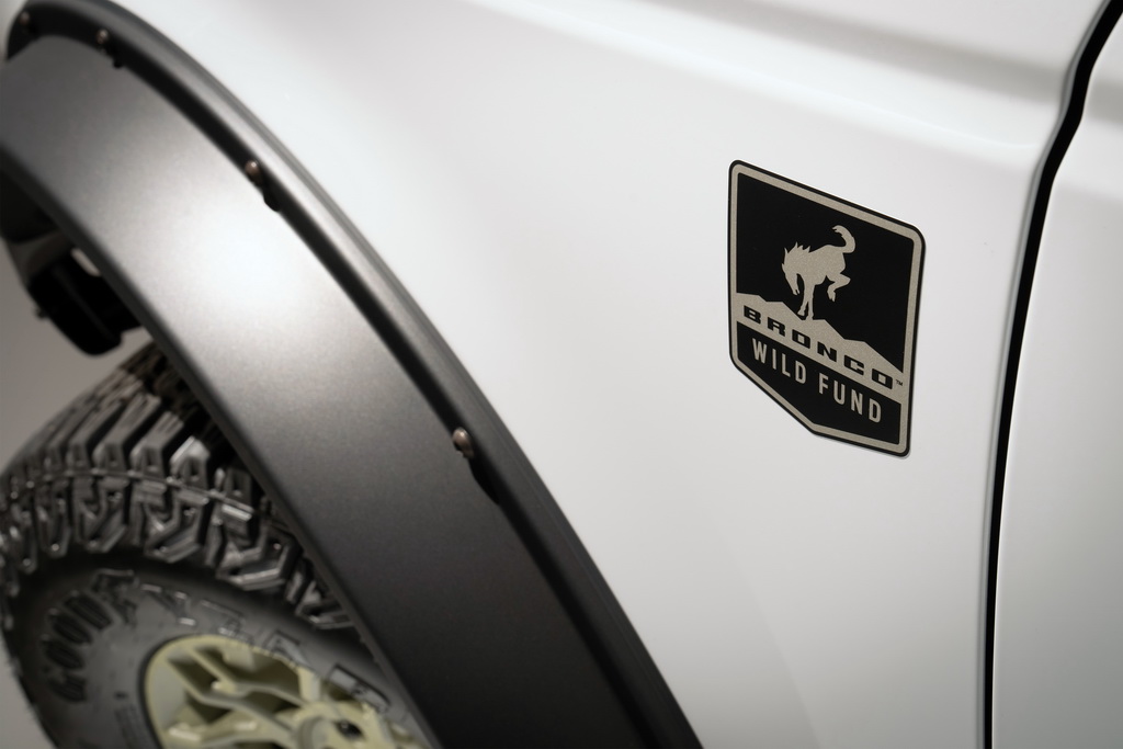 Вдохновленный миссией Bronco Wild Fund, этот 4-дверный Bronco Big Bend с 2,3-литровым двигателем EcoBoost отдает дань уважения миссии Ford по сохранению чистоты, зелени и красоты нашей планеты для будущих поколений. Созданный специалистами Ford Performance Parts, этот концептуальный Bronco получил 17-дюймовые диски в зеленом цвете, внедорожную резину Goodyear Territory MT, поднятую на 50 мм подвеску с пружинами и амортизаторами от Bilstein, кожаные сиденья Katzkin и декоративные аппликации на кузове. Решетку радиатора украсили зелеными вставками. Двери Ford Performance Parts Tube и мягкий верх с электроприводом позволяют наслаждаться природой.