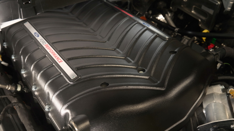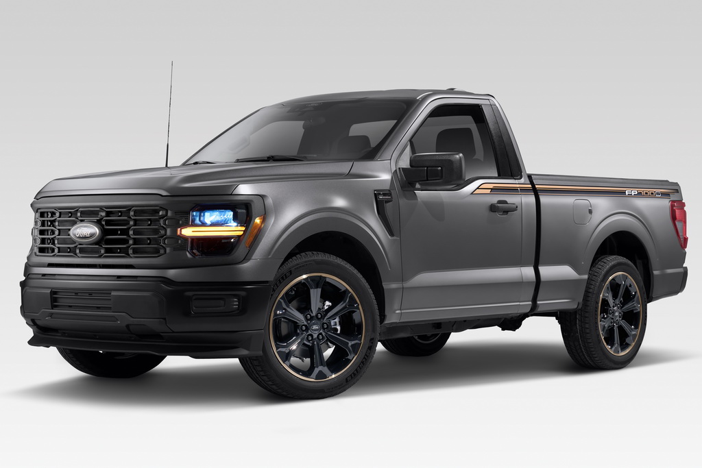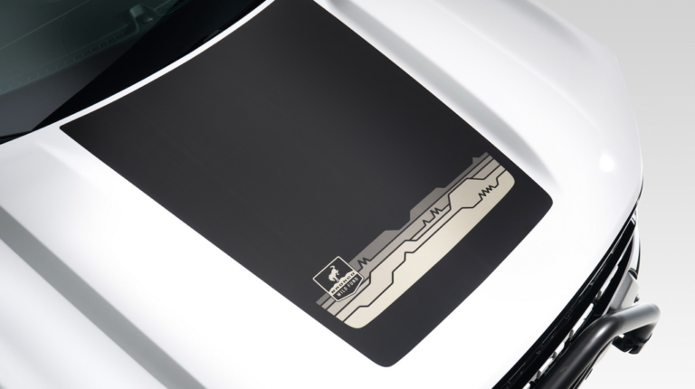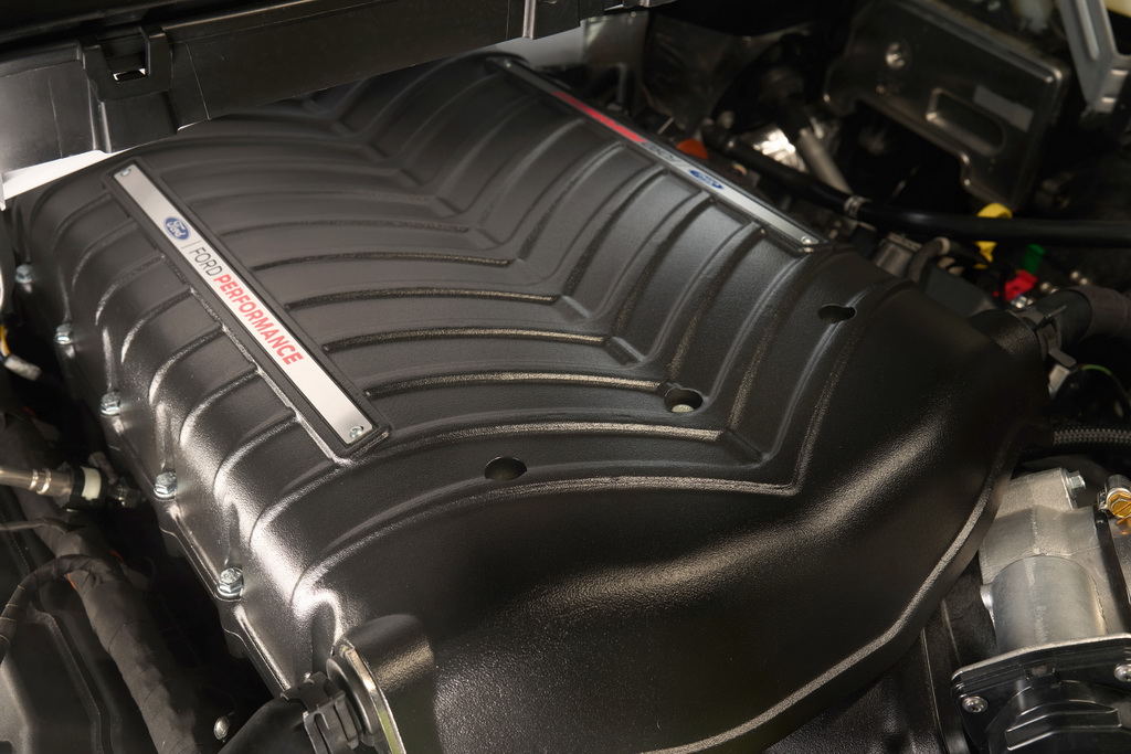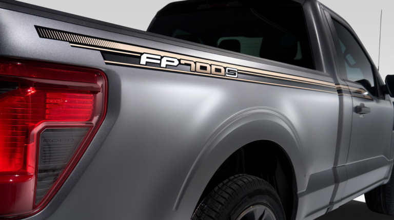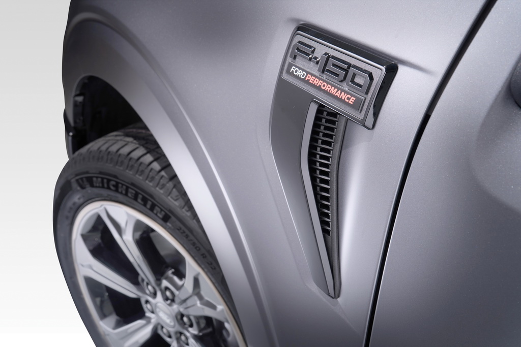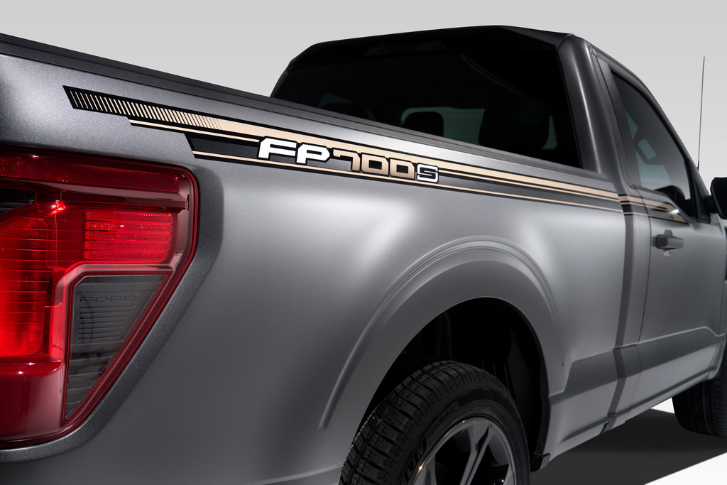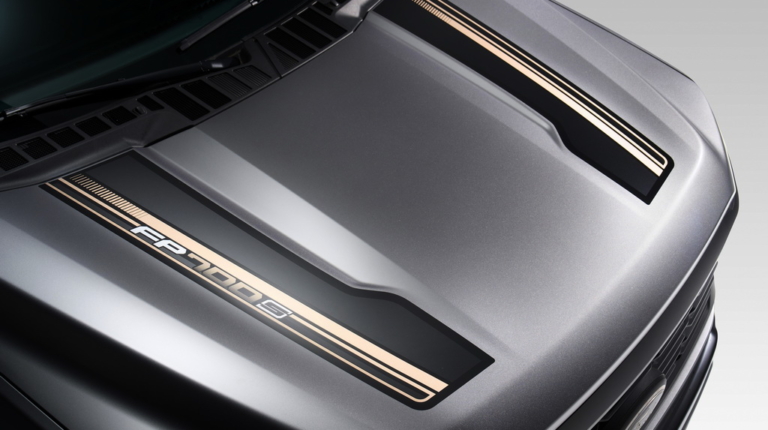Начнем с пикапа F-150 FP700S, который создан на базе классической “рабочей лошадки” с кабиной XL Regular Cab. Но несмотря на скромный облик, этот заднеприводный пикап имеет под капотом 5-литровый V8 с 3-литровым нагнетателем Whipple Supercharger. Благодаря ему мощность двигателя достигает 522 кВт/710 л.с., а крутящий момент составляет 799 Нм. Помимо мощного мотора пикап получил комплект для уменьшения клиренса Ford Performance Lowering Kit, выхлопную систему Cat Back, вентиляционные отверстия на крыльях, декоративные эмблемы и графику.