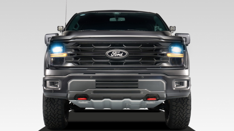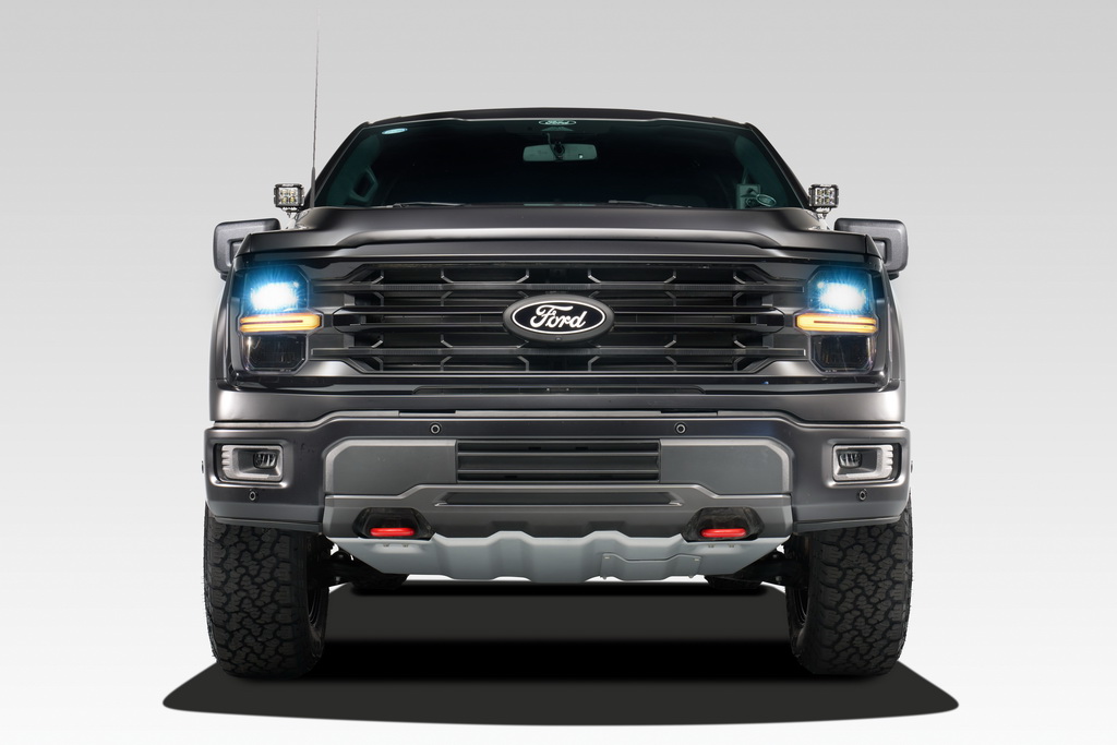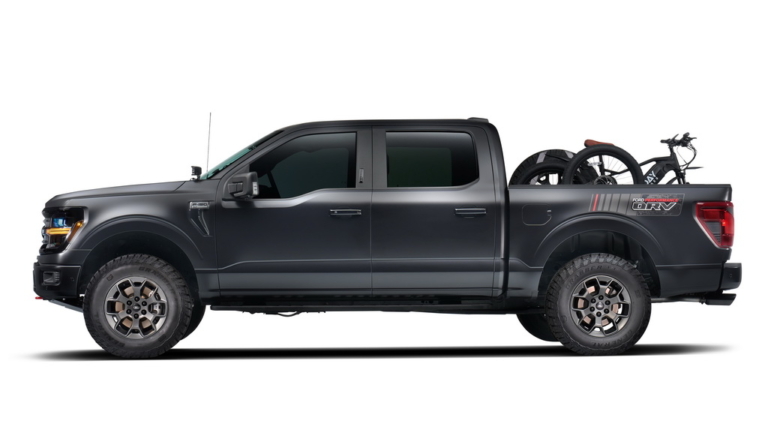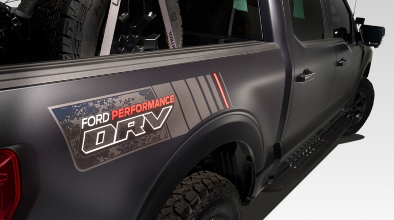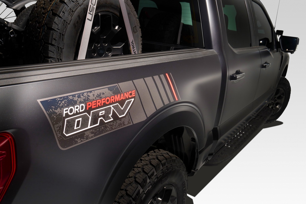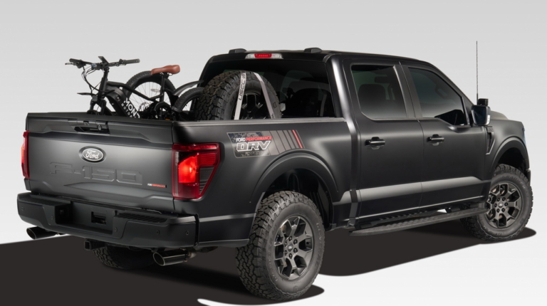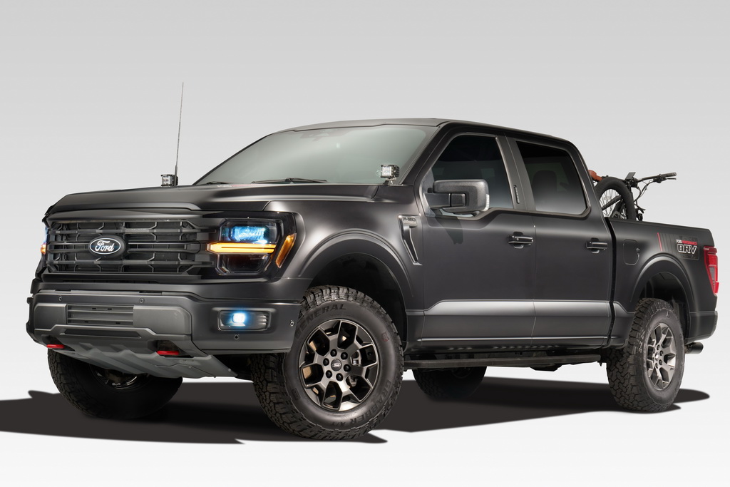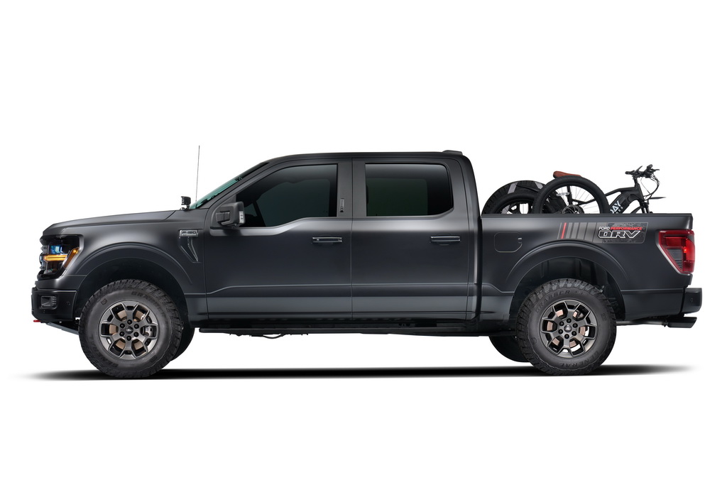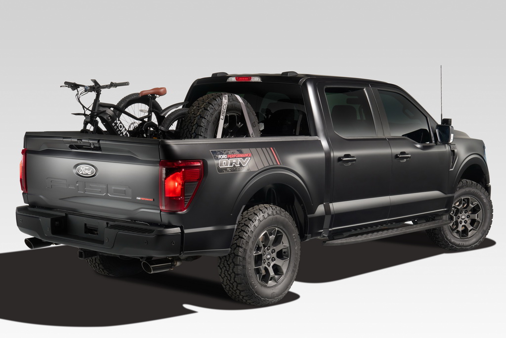 Еще один вариант самого продаваемого в мире пикапа выполнен в другой стилистике. Если F-150 FP700S адресован фанам скорости, то F-150 ORV создан для тех, кто предпочитает скоростным трассам глубокие каньоны и лесные дебри. Мастера подразделение Ford Performance дополнительно подняли машину над дорогой на 50 мм с помощью комплекта элементов подвески от Bilstein, установили защиту днища и вспомогательные фары RIGID Industries. Также пикап получил новые колесные диски с внедорожной резиной General Grabber A/T, декоративные аппликации на капоте и крыльях, а в грузовом отделении разместили каркас для крепления запасного колеса и электробайка. Пикап создан на базе полноприводной версии F-150 XLT FX4 и оснащен 5-литровым V8.