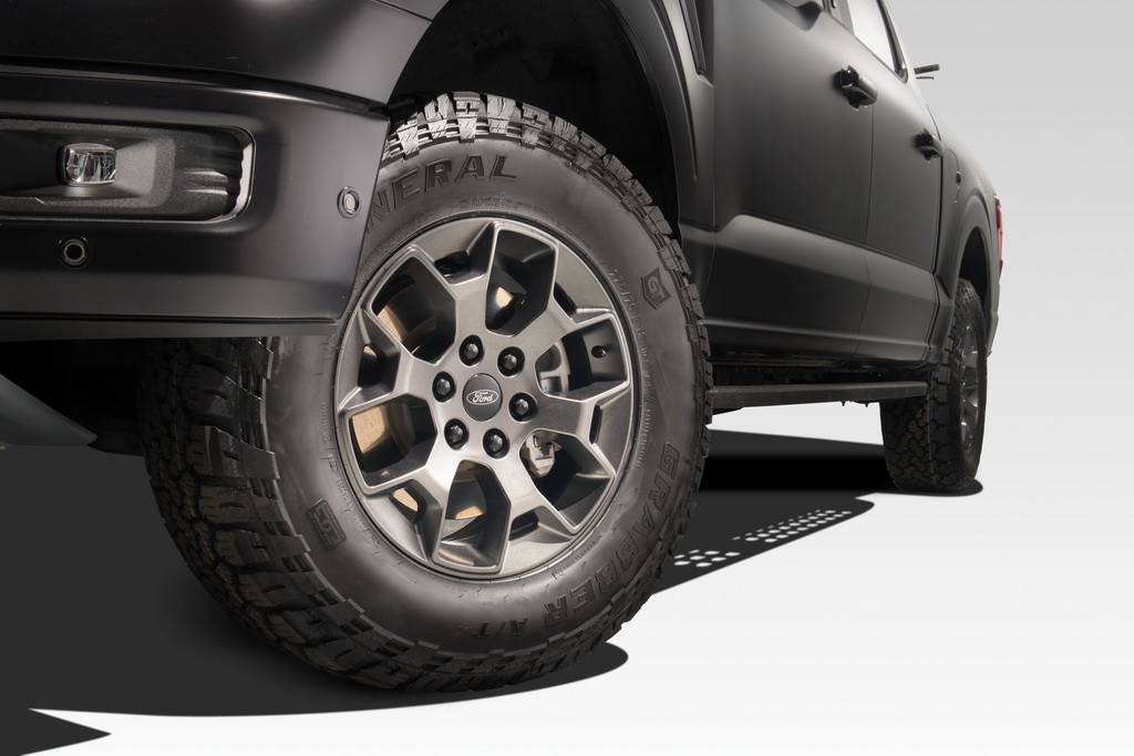 На выставке будут представлены первые два варианта – Matte Black и Sinister Bronze. Оба вездехода имеют увеличенный на 50 мм клиренс, 17-дюймовые колеса с внедорожной резиной Goodyear Territory MT, расширители крыльев, новый держатель запасного колеса и инструмент Ford Performance Parts. В соответствии с названием для декора используется соответственно черный или бронзовый цвета.