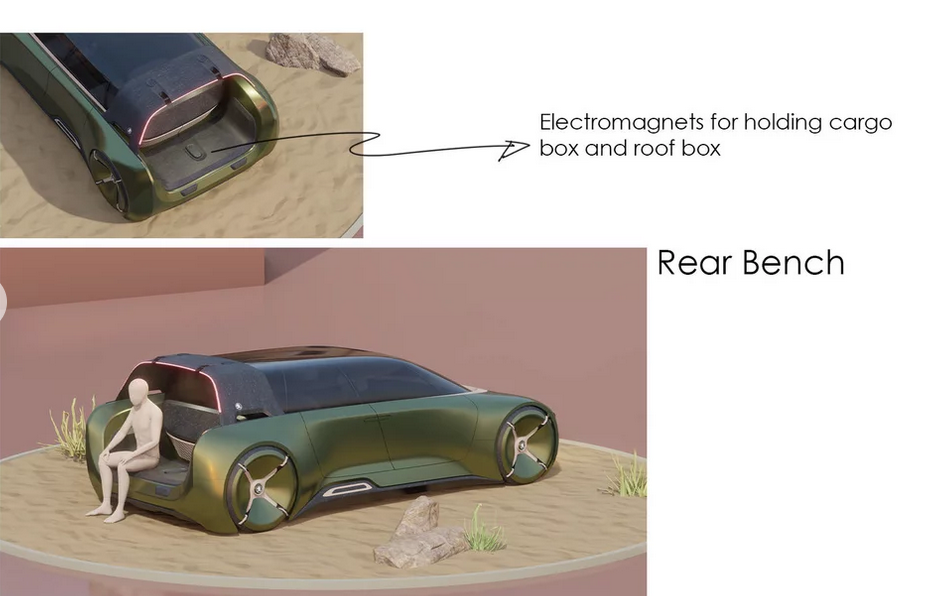 Так, у Skoda Fugio передний багажник не открывается, как у большинства электрокаров, а выдвигается вперед. Получается своего рода ящик, в который можно сложить необходимые вещи или предметы. Еще более нестандартно оформлена задняя часть. Между стеклом и бампером дизайнер оставил свободное пространство. Его можно использовать, как скамейку для отдыха на природе. Об этом сообщает издание Auto.CZ.