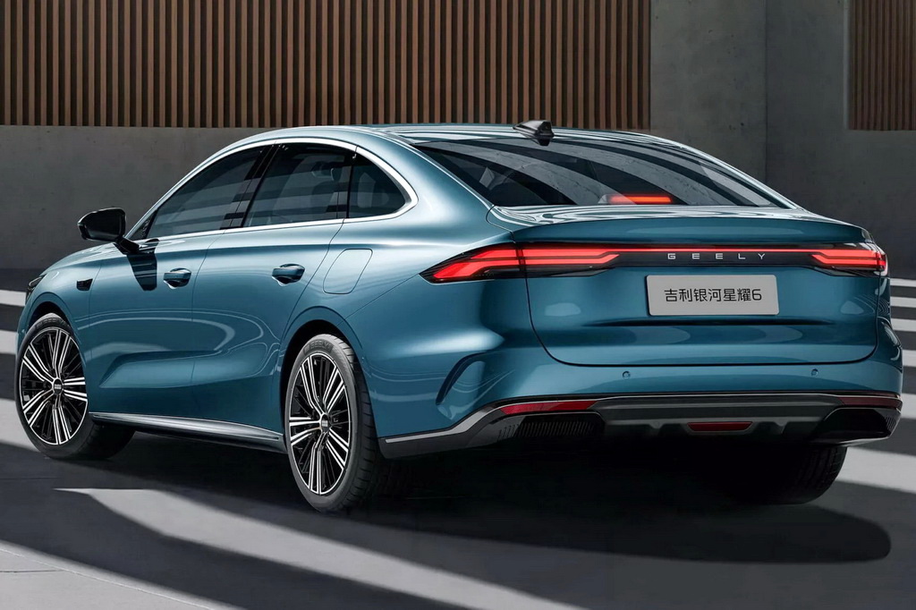 Если взглянуть на профиль сбоку, Galaxy Star 6 в целом напоминает Geely Preface L, представленный в 2023 году. Однако он выглядит более элегантно благодаря рельефным панелям и 17-дюймовым легкосплавным дискам. Задняя часть менее примечательна: широкая светодиодная полоса задних фонарей и минималистичный диффузор.