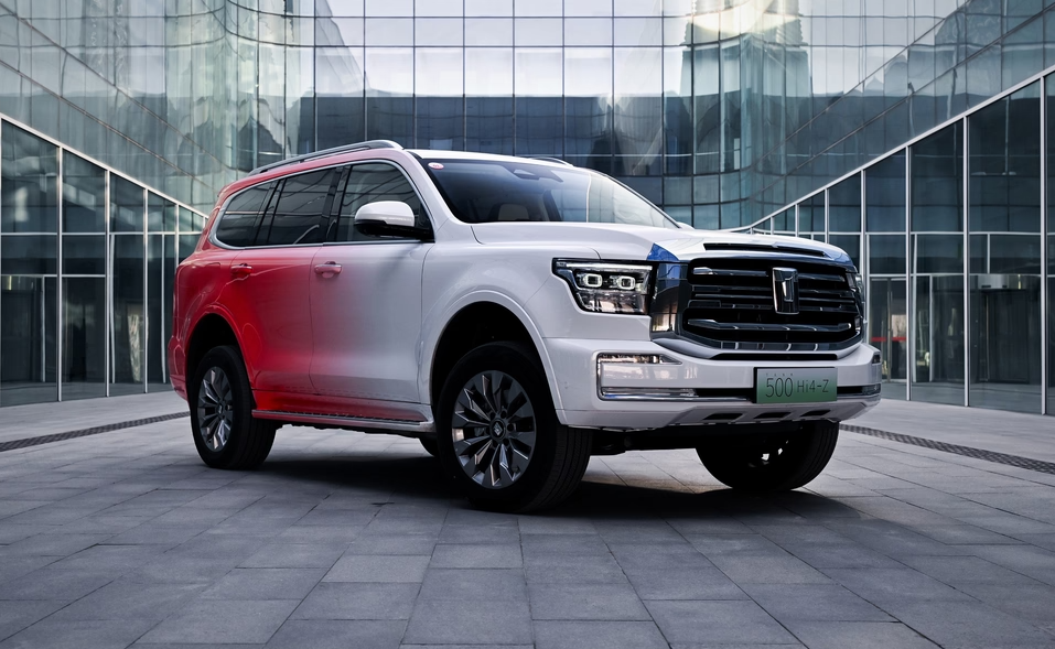 Новинка достигает в длину 5078 мм при колесной базе 2850 мм. Ее ширина и высота составляют 1934 и 1905 мм соответственно. Новый Tank 500 Hi4-T выглядит очень величественно, что впрочем неудивительно, ведь его в компании позиционируют как конкурента Тойота Land Cruiser 300. Внедорожник получил атлетичный кузов с мягкими линиями, широким капотом, почти вертикальной передней частью и дорожным просветом 210 мм. Массивную решетку радиатора дополняют крупные фары и бампер с оригинальной вставкой.