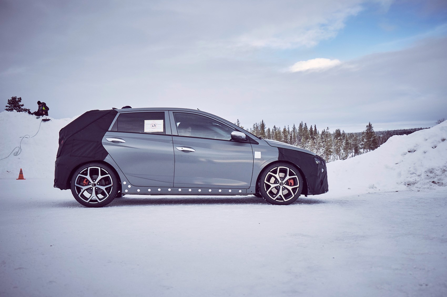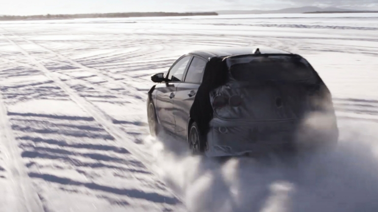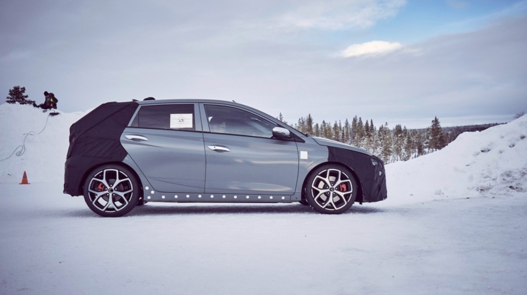 На снимках и видео хот-хэтч от Hyundai красуется в камуфляже, поэтому много о его внешнем виде сказать не получится. Хотя в глаза бросаются большие колесные арки и колеса, массивные передние тормоза, а также выхлоп, выполненный в виде “двустволки”.