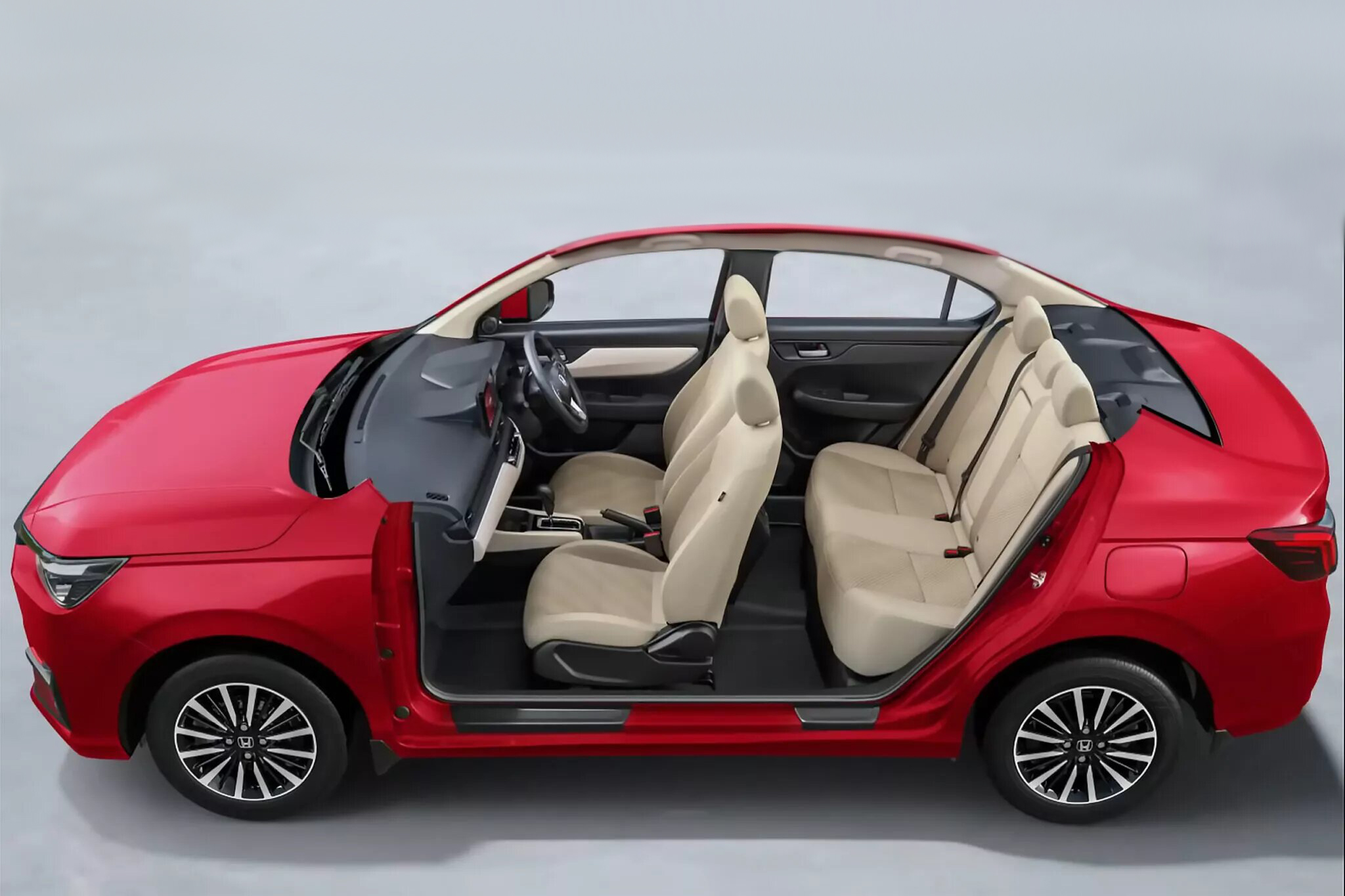 Салон также претерпел серьезные изменения. Дизайн интерьера выполнен в стилистике минимализма. Во многом новинка унифицирована с кроссовером Honda Elevate, от которого она унаследовала рулевое колесо, 7-дюймовую цифровую шкалу приборов, блок управления различными функциями и воздуховоды системы вентиляции. По центру торпеды расположился 8-дюймовый дисплей инфо-развлекательной системы. Практичный седан также имеет вместительный 416-литровый багажник.