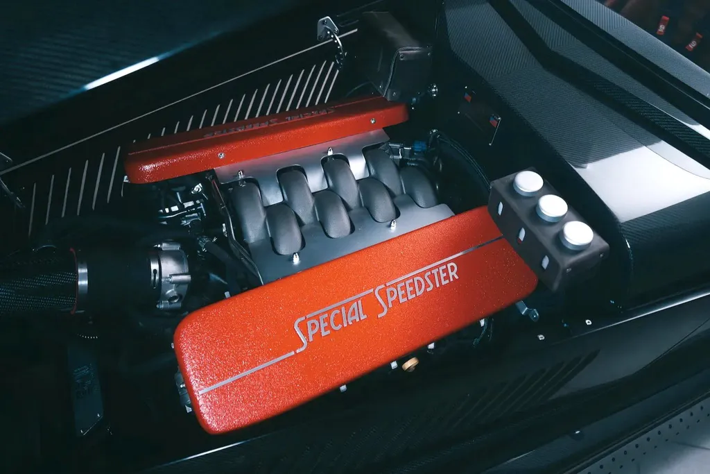 В паре с двигателем работает пятиступенчатая механика Tremec и дифференциал повышенного трения на задней оси. Полностью независимая подвеска, электроусилитель руля и тормозная система Brembо с шестипоршневыми суппортами спереди и четырехпоршневыми сзади гарантируют: SP40 будет выглядеть как гость из 1930-х, но ехать — как современный спорткар.