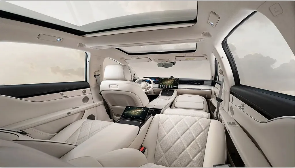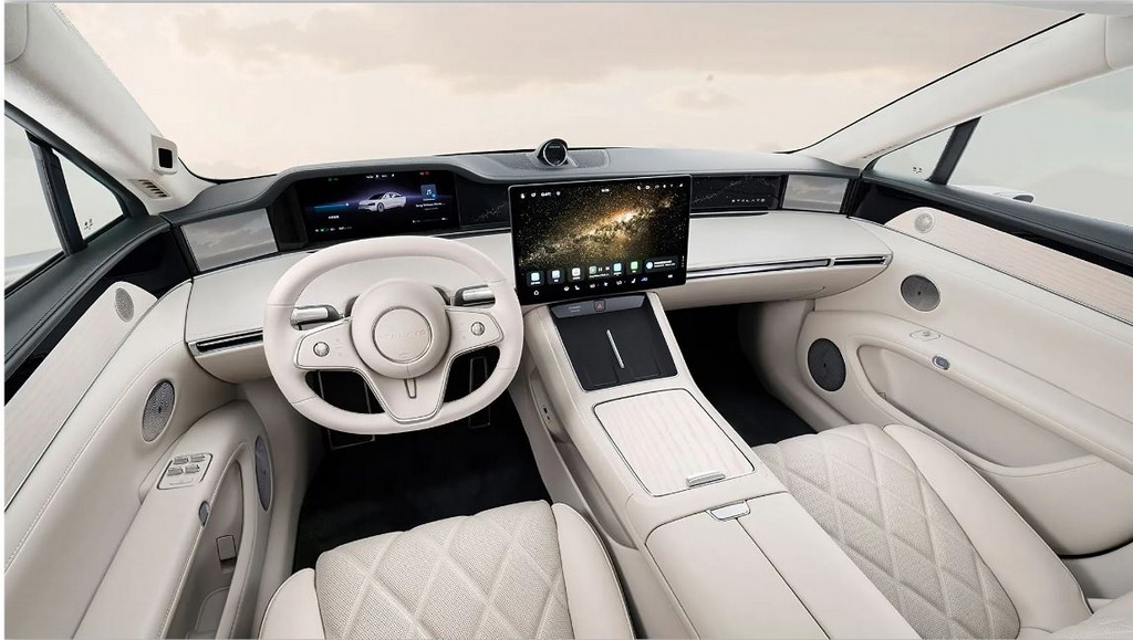 Конкурент Mercedes-Benz EQS получил роскошную кожаную отделку интерьера. Каждое из четырех индивидуальных кресел в салоне снабжено вентиляцией, подогревом и массажем. Для водителя предусмотрен многофункицональный руль в кожаной оплетке, большой дисплей на приборной панели и отдельный сенсорный экран для управления мультимедиа на основе архитектуры Huawei HarmonyOS а также. Меломанов порадует фирменная музыкальная система Huawei Sound. В дверные встроены динамики аудиосистемы и амбиентное освещение. Для повышения акустического комфорта все боковые окна изготовлены их двуслойных шумоизоляционных стекол.
