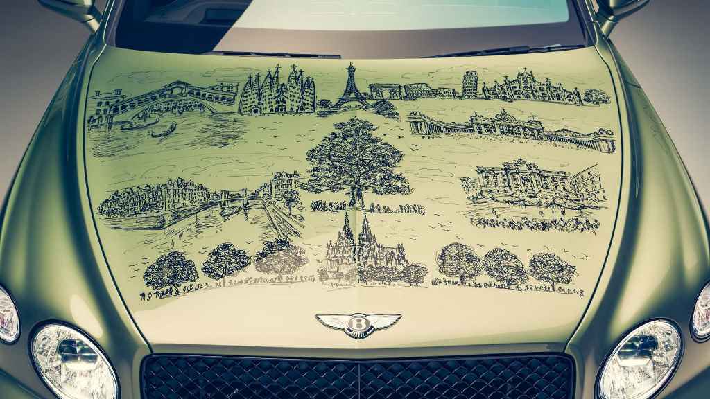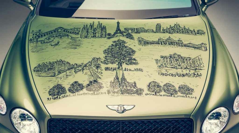 Стивен Уилтшир вручную нанес на кузов автомобиля изображения 29 мировых достопримечательностей. Рисунки стилизованы под фрески и выполнены не по картинкам или фото, а по памяти художника. Здесь есть памятные здания и скульптуры Нью-Йорка, Лондона, Парижа, Милана, Венеции, Токио, Гонконга и Рима. Они окружены людьми разных национальностей. В Bentley подчеркнули, что в компании работают люди 52 национальностей.